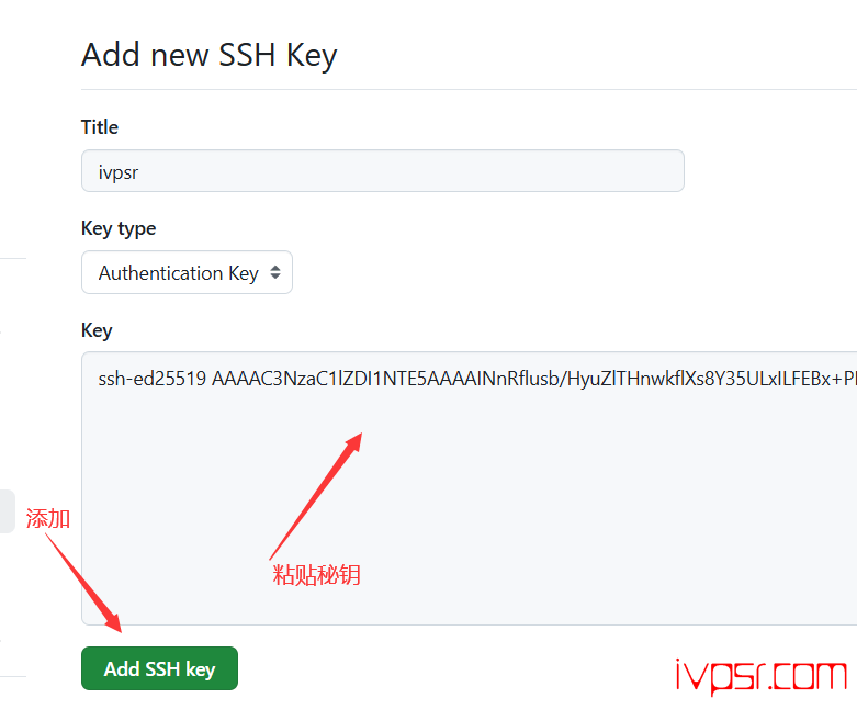 打开GitHub登录账户后,右上角的头像点一下,选择 Settings -> 左侧找到一个钥匙图标的 SSH and GPG keys -> SSH keys项下面 点击 New SSH key
