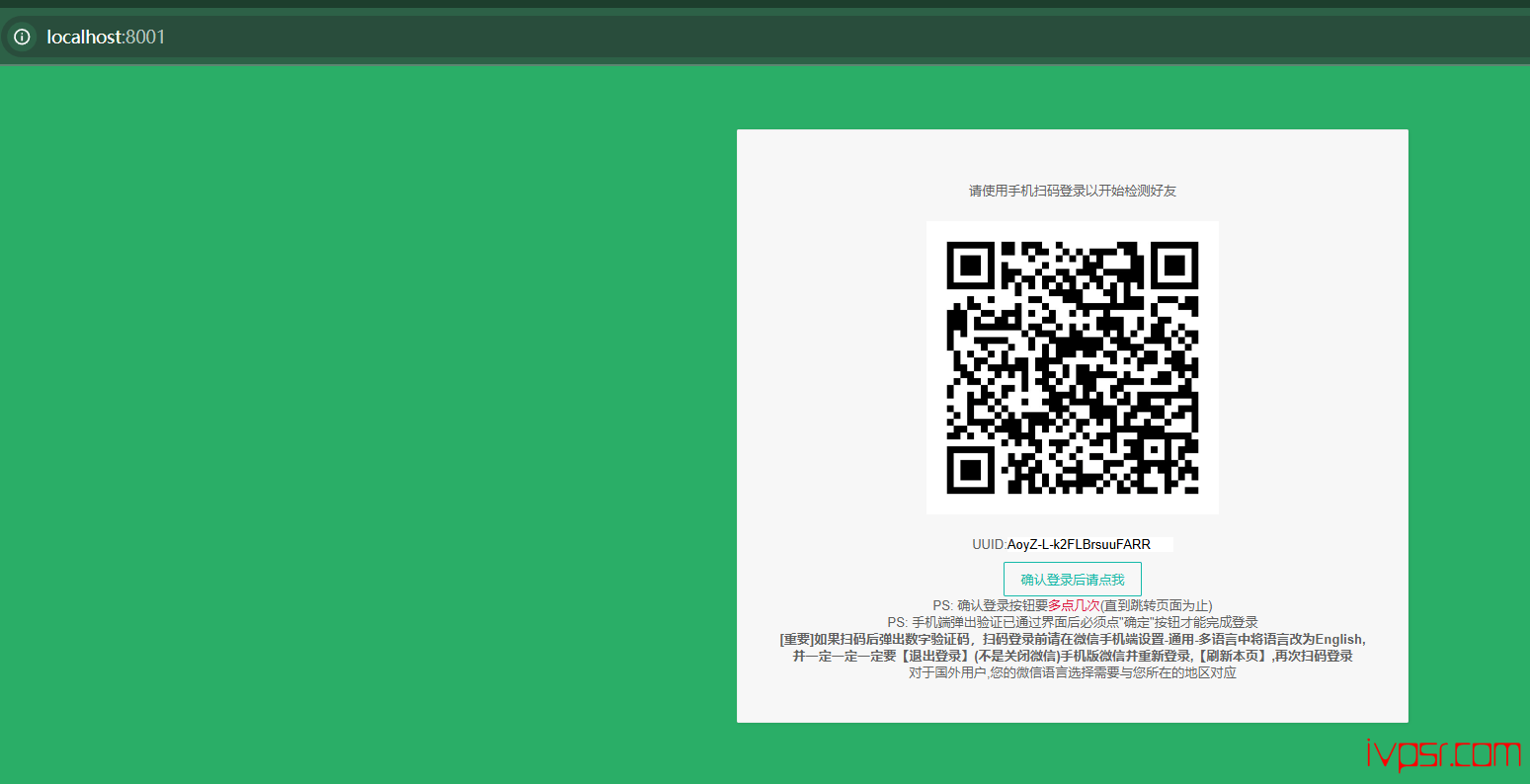 双击之后会自动运行程序,并且打开一个网页窗口,我们就用微信扫这个二维码来登录进行操作,扫描登录之后自动就开始进行扫描了